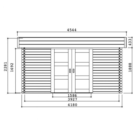 Abri de jardin toit plat 40 mm en sapin du nord VIBORG 418 x 328 cm - 13,71 m² - S8994.