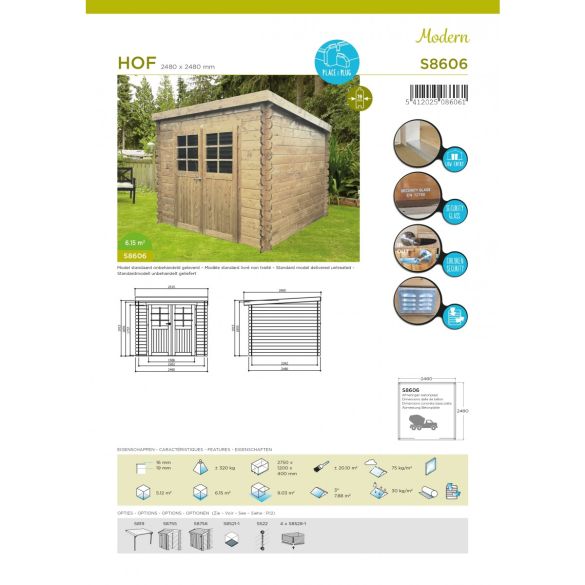 Abri de jardin HOF en sapin du nord 248 x 248 cm.