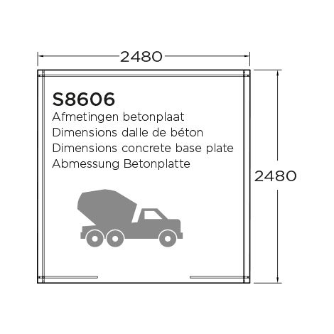 Dimensions dalle en béton : 2480 x 2480 mm.