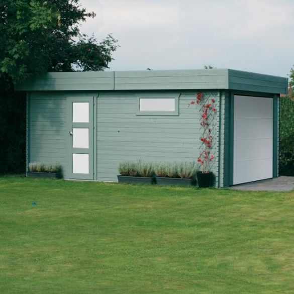 Garage voiture 40 mm Modern 19,26 m² avec porte motorisée - 358 x 538 cm.