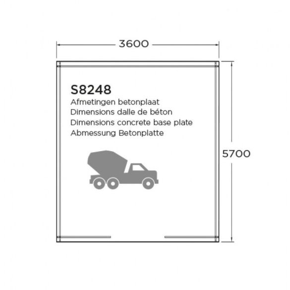 Dimensions dalle en béton : 3580 x 5380 mm.