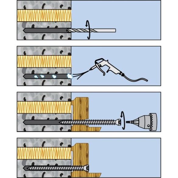 100 Vis béton Ø 7,5x152 mm Torx30 en acier conçues pour la fixation directe de cadres de portes et/ou fenêtres dans le béton.