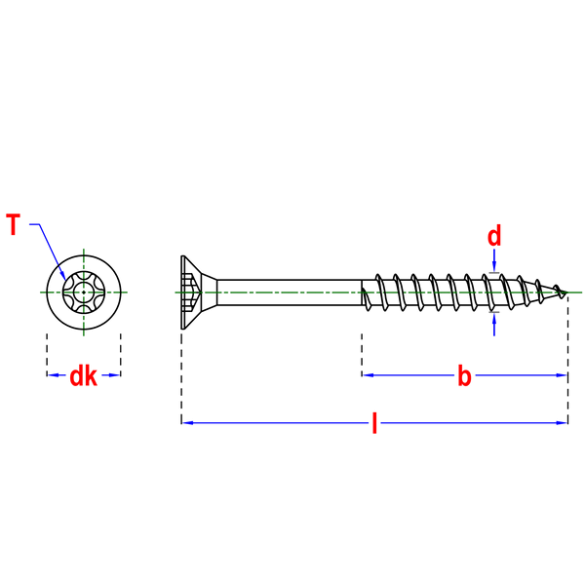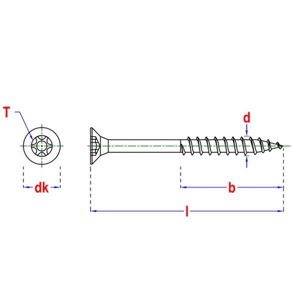 400 Vis pour terrasse en Inox A2 5x60 mm tête fraisée réduite, filetage partiel. Embout torx TX25 inclus.