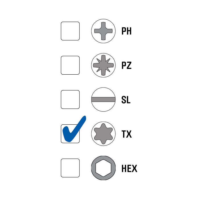 - Tête disque large pour meilleur resserrage d’assemblages.