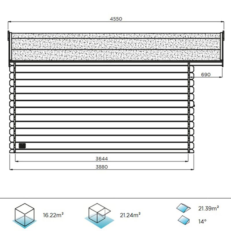 Avec ses 16,22 m² de surface extérieure et ses parois de 28 mm d'épaisseur, L'abri en bois Visp offre un volume généreux pour stocker votre mobilier de jardin, vos outils ou même aménager un atelier créatif. Sa double porte 'low entry' (entrée facile) avec verre acrylique et poignée avec serrure à clé apporte luminosité et confort, transformant cet abri de jardin en un véritable espace de vie.