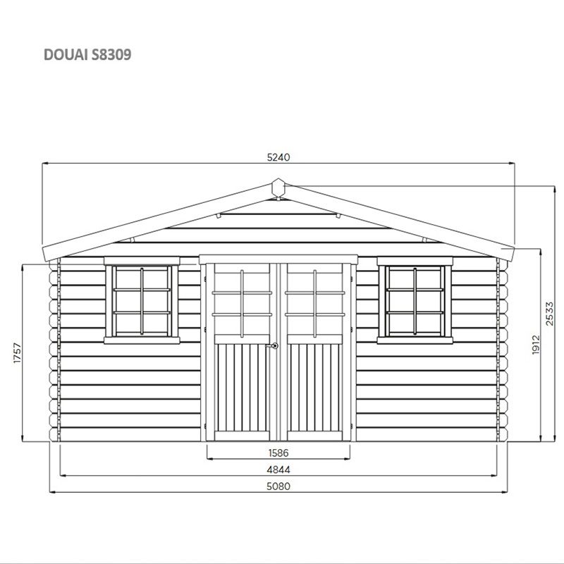 Chalet de jardin en bois massif 28 mm DOUAI 508x298 cm - 15,14 m².