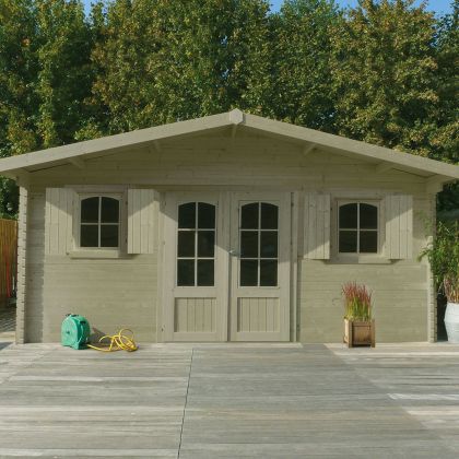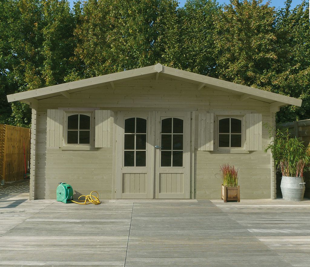 Isolation et robustesse : madriers de 40 mm et toiture résistante.