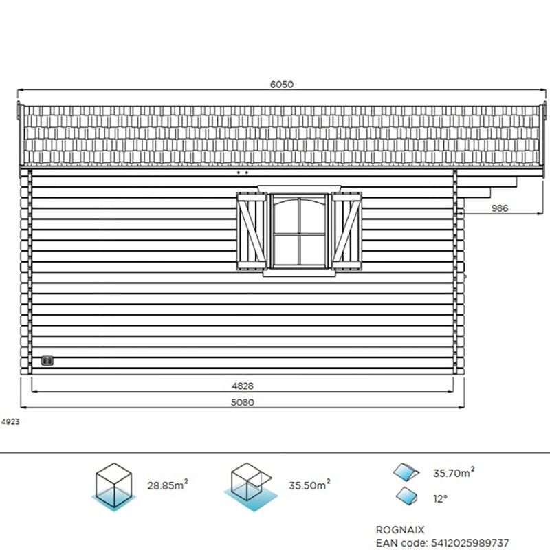 Conçu pour durer, l’abri de jardin ROGNAIX 28,85 m² est fabriqué en bois massif certifié, issu de forêts gérées durablement. Ses madriers de 40 mm s’emboîtent facilement grâce à la technologie Place & Plug garantissant une installation rapide et solide, tandis que le traitement autoclave assure une protection optimale contre l’humidité et les insectes. Le toit double pente, recouvert de shingles rouges, garantit une étanchéité parfaite.