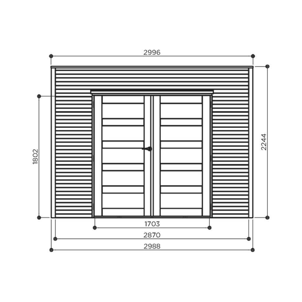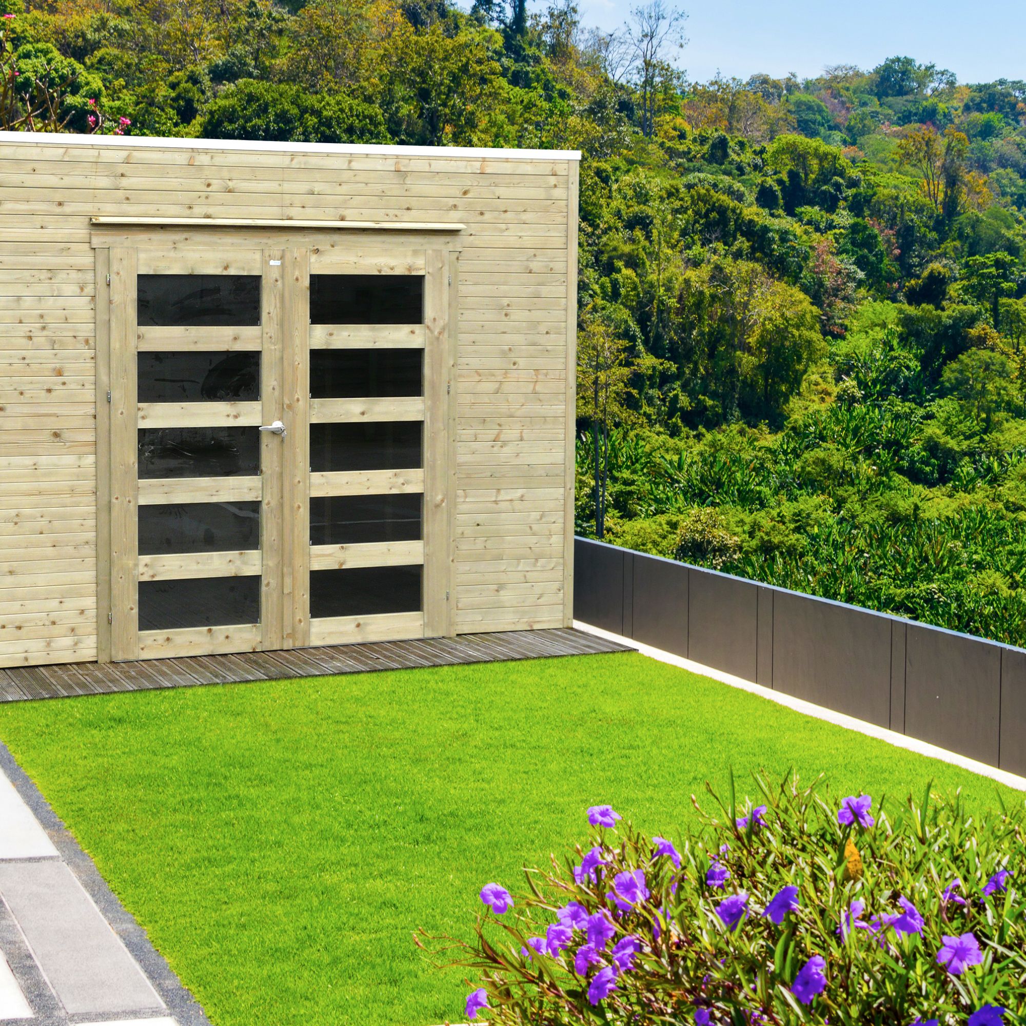 Abri de jardin en bois traité autoclave 19 mm BARI – 299x291 cm avec toit plat.