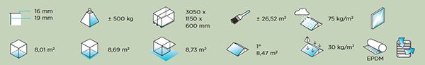 Sous-toiture : Profiles en bois 16 mm (bâche EPDM incluse)