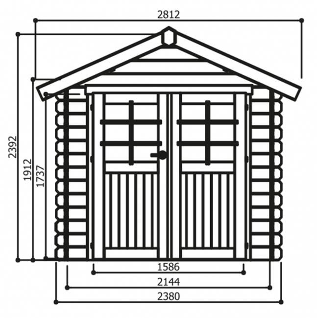 Chalet de jardin 28 mm traité autoclave Nimes 5,66 m² - toit double pente - 238 x 238 cm.