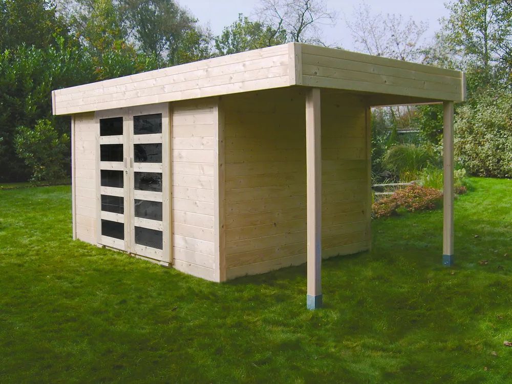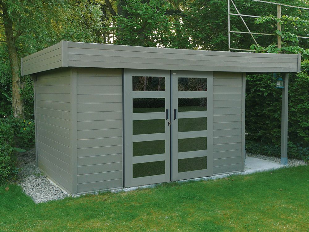 L'abri de jardin Larvik au look résolument moderne avec son toit plat est doté d'un espace de stockage fermé et d'un appentis pour y entreposer tout ce que vous souhaitez.