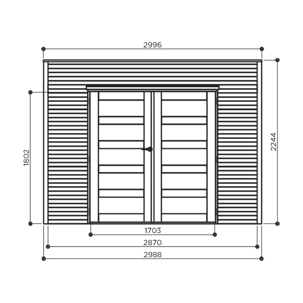 L'abri Capri est équipé d'une porte double dotée d'une poignée avec sécurité enfant et de fenêtres sécurisées, il dispose également d'une ventilation intérieure afin de laisser l'air circuler et éviter tout problème d'humidité.