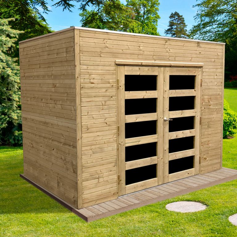 Abri de jardin 19 mm en bois autoclave 5,94 m² CAPRI - Toit plat - 2988 x 1988 mm.