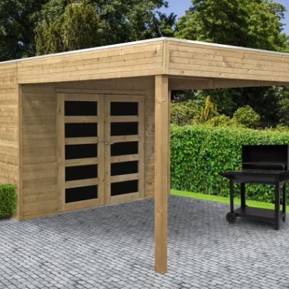 Abri de jardin en bois autoclave avec pergola POTENZA - 2970 + 2988x1998 mm - toit plat.