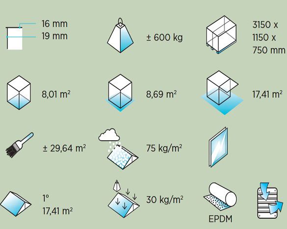 L'abri Matera dispose d’un toit plat composé de voliges 16 mm recouvertes d’une membrane EPDM étanche. Le toit est incliné de 1° pour l’écoulement des eaux de pluie.