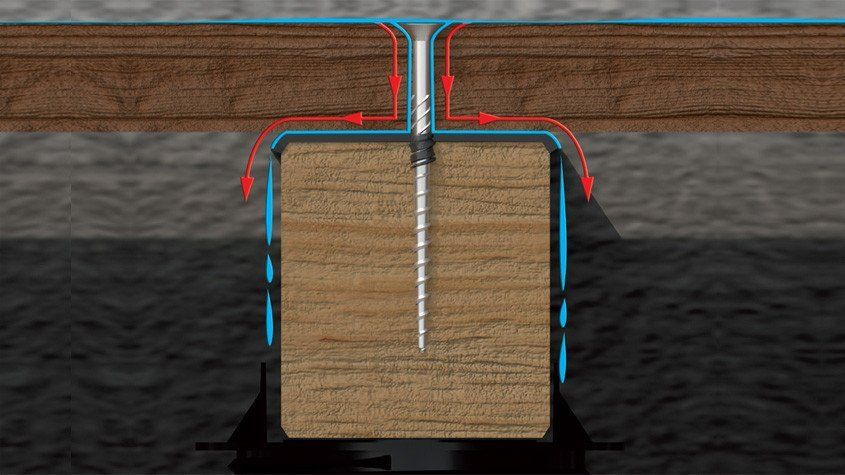 La bande bitumeuse augmente la durée de vie de la structure de votre terrasse en bois en la protégeant contre le ruissellement de l'eau de pluie : La bande BITUDECK® va agir comme une barrière étanche en s'entortillant autour de la vis lors de la fixation des lames. Cela va protéger les lambourdes des infiltrations dans les fentes et trous de vis. Ainsi, ces trous et fentes étant les points les plus sensibles de la structure sont durablement protégés. Pour éviter le pourrissement de votre structure, nous conseillons très fortement la pose de la bande BITUDECK sur vos lambourdes.