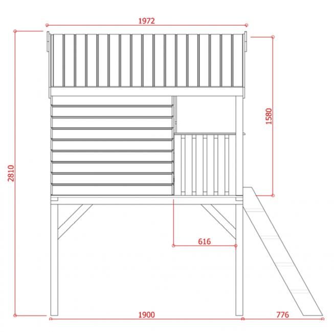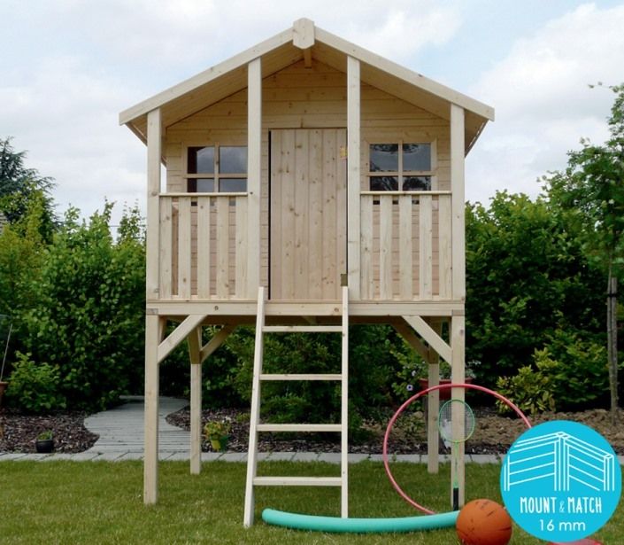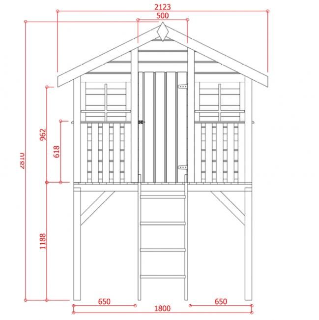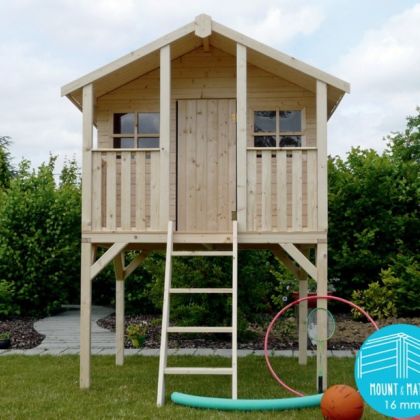 Surélevée et accessible grâce à une échelle, la cabane aux dimensions généreuses de 180 x 190 x 281 cm Playhouse Traditional permet aux enfants de laisser libre cours à leur imagination. Conçue en pin du Nord brut certifié non traité, elle offre un espace de jeu sécurisé, chaleureux et stimulant pour les enfants dès 3 ans. Sa surface au sol de 5,29 m², complétée par une terrasse couverte, crée un espace idéal pour s’amuser, lire ou inventer des histoires.