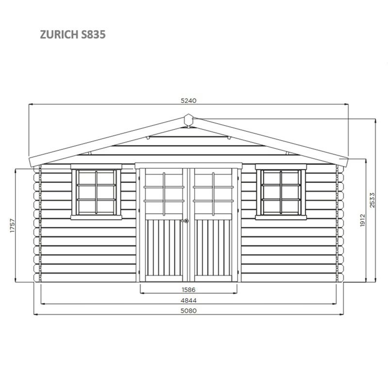 Chalet de jardin Zurich en sapin du Nord non traité 508 x 388 cm.