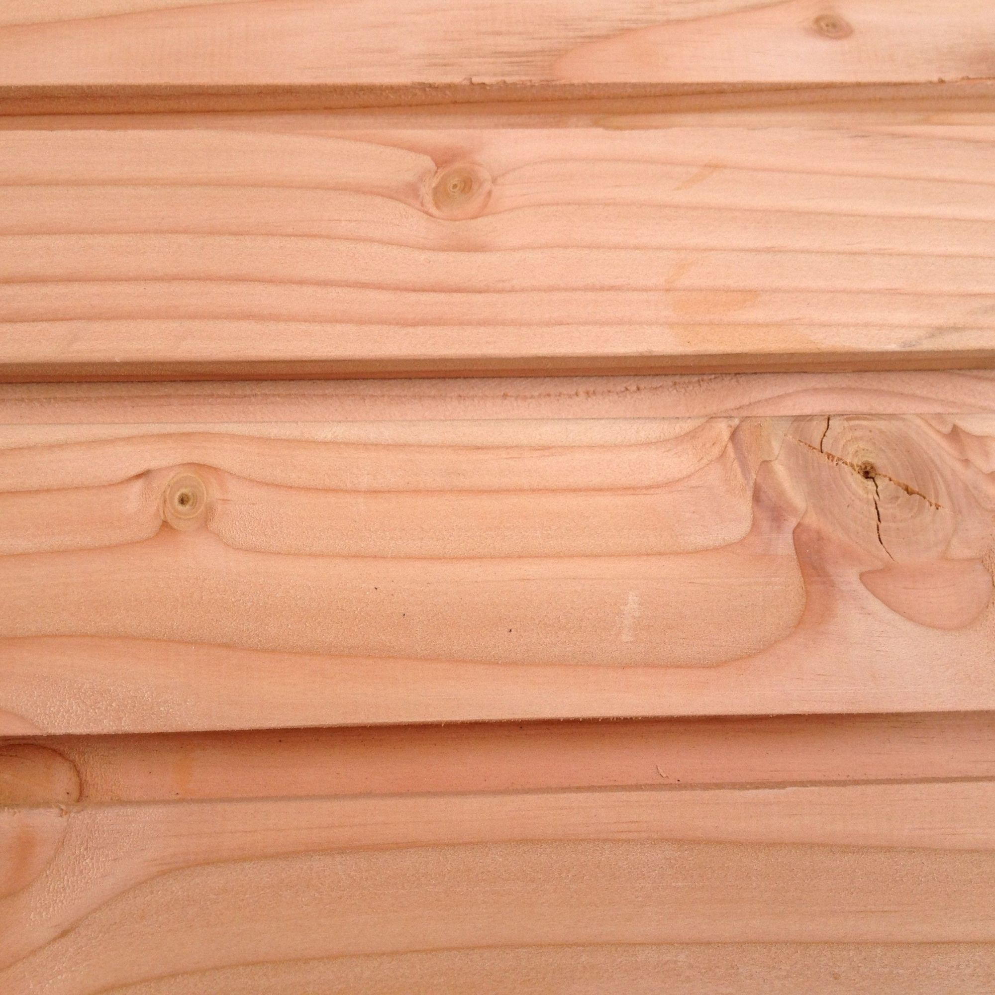 Bardage douglas non traité aspect faux claire voie à emboitement conique. Provenance : France.