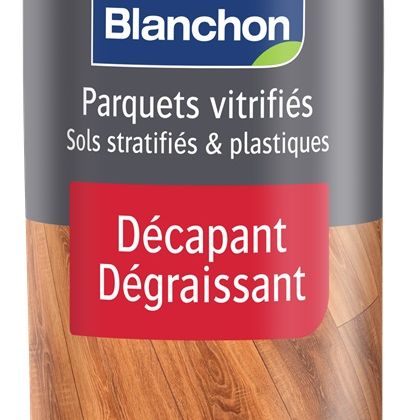 Dégraissant et décapant puissant BLANCHON pour parquet vernis, vitrifiés ou stratifiés. Produit 2 en 1 : Nettoyage intensif et/ou décapage avant métallisation 1 litre.