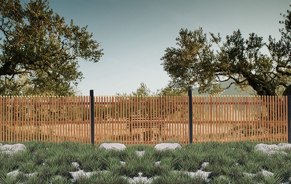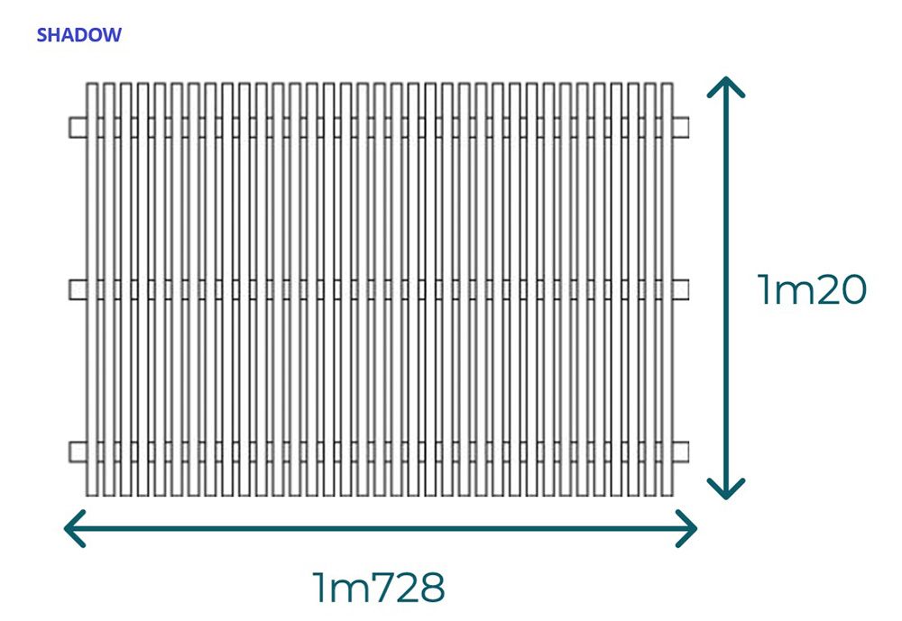 — Design ajouré et moderne : les lames verticales, finement espacées, laissent circuler l’air et filtrent la lumière pour un effet d’ombres subtil tout au long de la journée. Il structure vos espaces sans les alourdir.