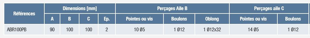 - Dimensions : A = 90 mm ; B = 100 mm ; C = 100 mm ; t = 2 mm.