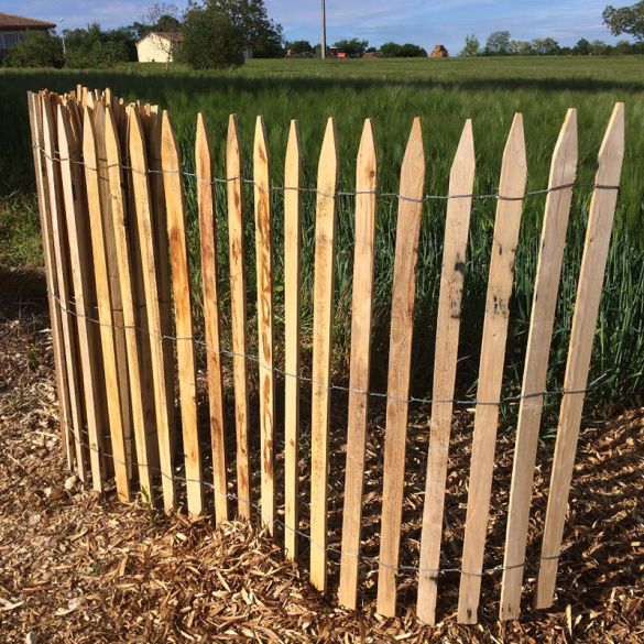 La ganivelle en chataignier est souvent utilisée comme barrière pour jardin ou potager, comme clôture de pré ou pour un enclos de petits animaux. Le châtaignier est protégé de manière naturelle contre l’humidité et la moisissure. Vous n’avez donc pas besoin de le traiter et vous ne risquez pas que des substances toxiques polluent votre terre.