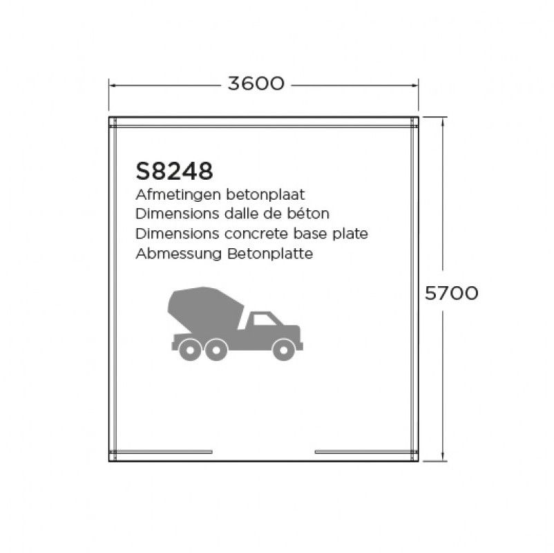 Dimensions dalle en béton : 3580 x 5380 mm.