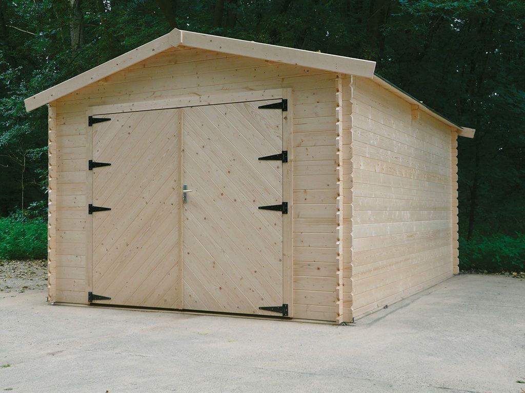 Garage bois 28 mm Traditional de 18,19 m² avec double porte en bois.