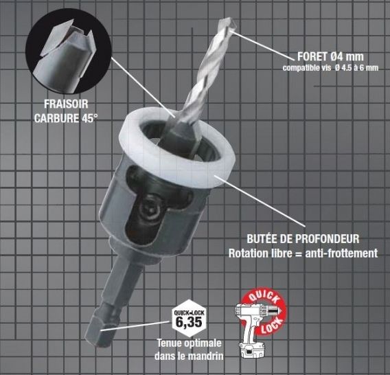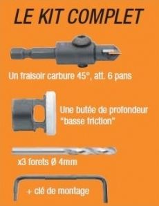 Kit pour perçage fraisage spécialement conçu pour des terrasses en bois durs et exotiques - Compatible vis Ø 4,5 à 6 mm.