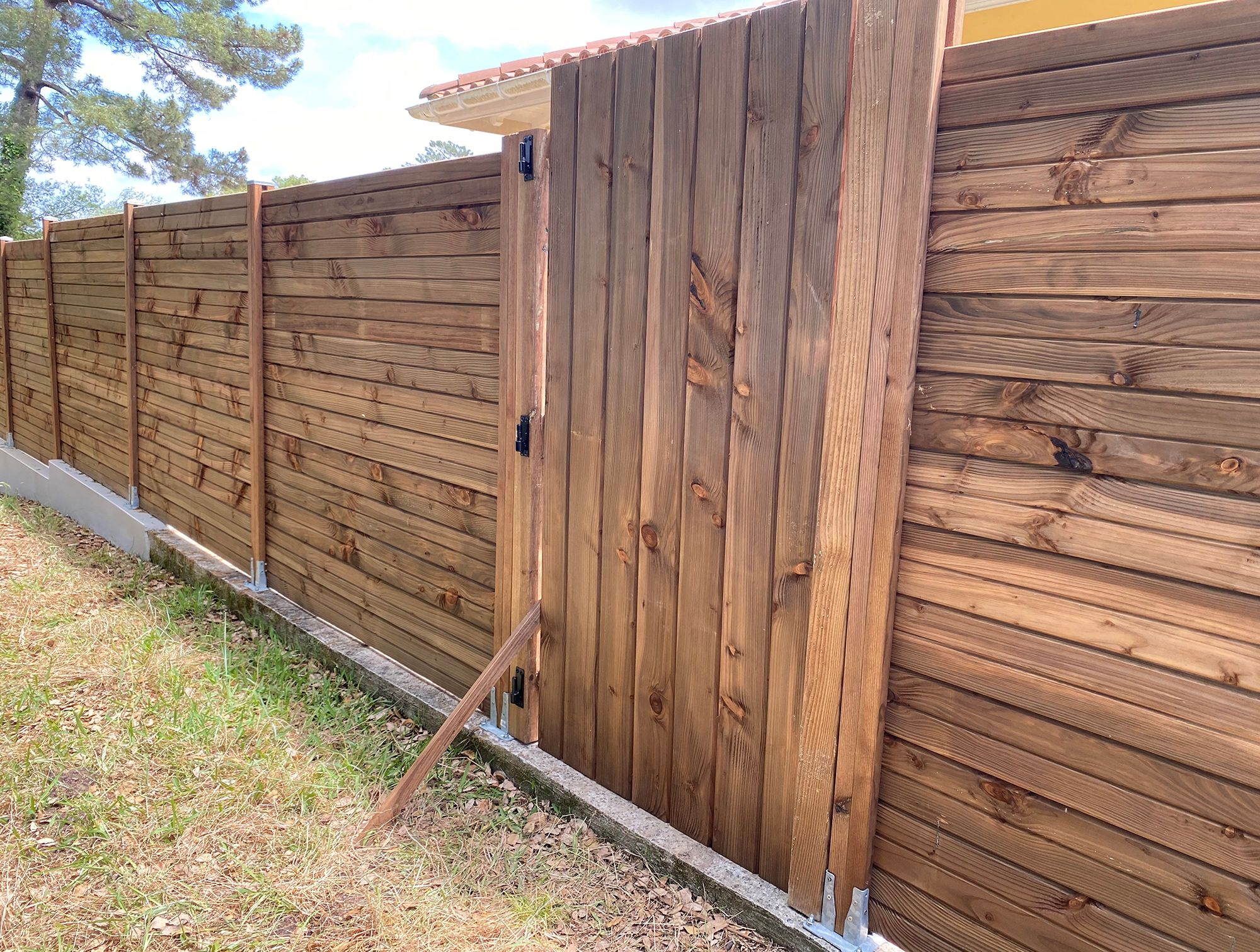 Les lames de clôture sont double face avec une face lisse et une face faux claire-voie ; à vous de choisir quelle face vous plaît davantage.