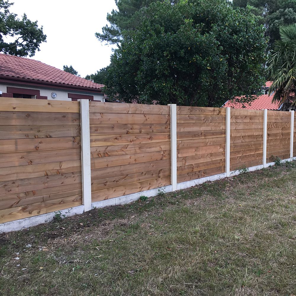 Chaque lame coulisse dans des poteaux rainurés en béton 12x12 cm pour composer une clôture pleine et parfaitement alignée. Cette conception assure :
