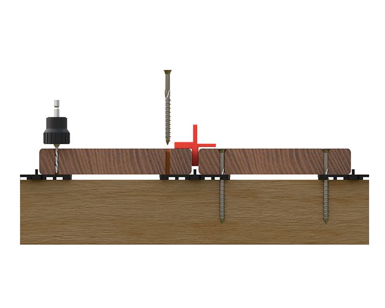 En raison de la dureté des lames de terrasse en ipé, il est IMPÉRATIF de pré-percer les trous de vis pour éviter de fendre le bois. Utilisez un kit fraisage/perçage pour que vos têtes de vis affleurent le plan de vos lames.