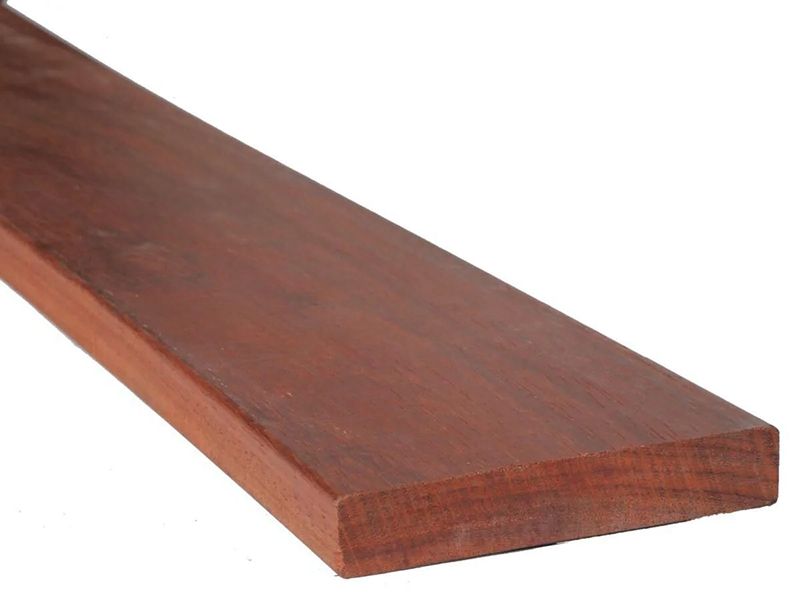 Le Padouk, originaire d’Afrique, est un bois exotique reconnu pour sa densité élevée (environ 790 kg/m³), sa résistance exceptionnelle de Classe 5 aux intempéries et sa durée de vie pouvant dépasser 30 ans sans traitement chimique. C’est l’un des rares bois à allier une solidité extrême et une stabilité remarquable, ce qui en fait un choix idéal pour les terrasses en bord de mer, les plages de piscine ou les structures fortement exposées.