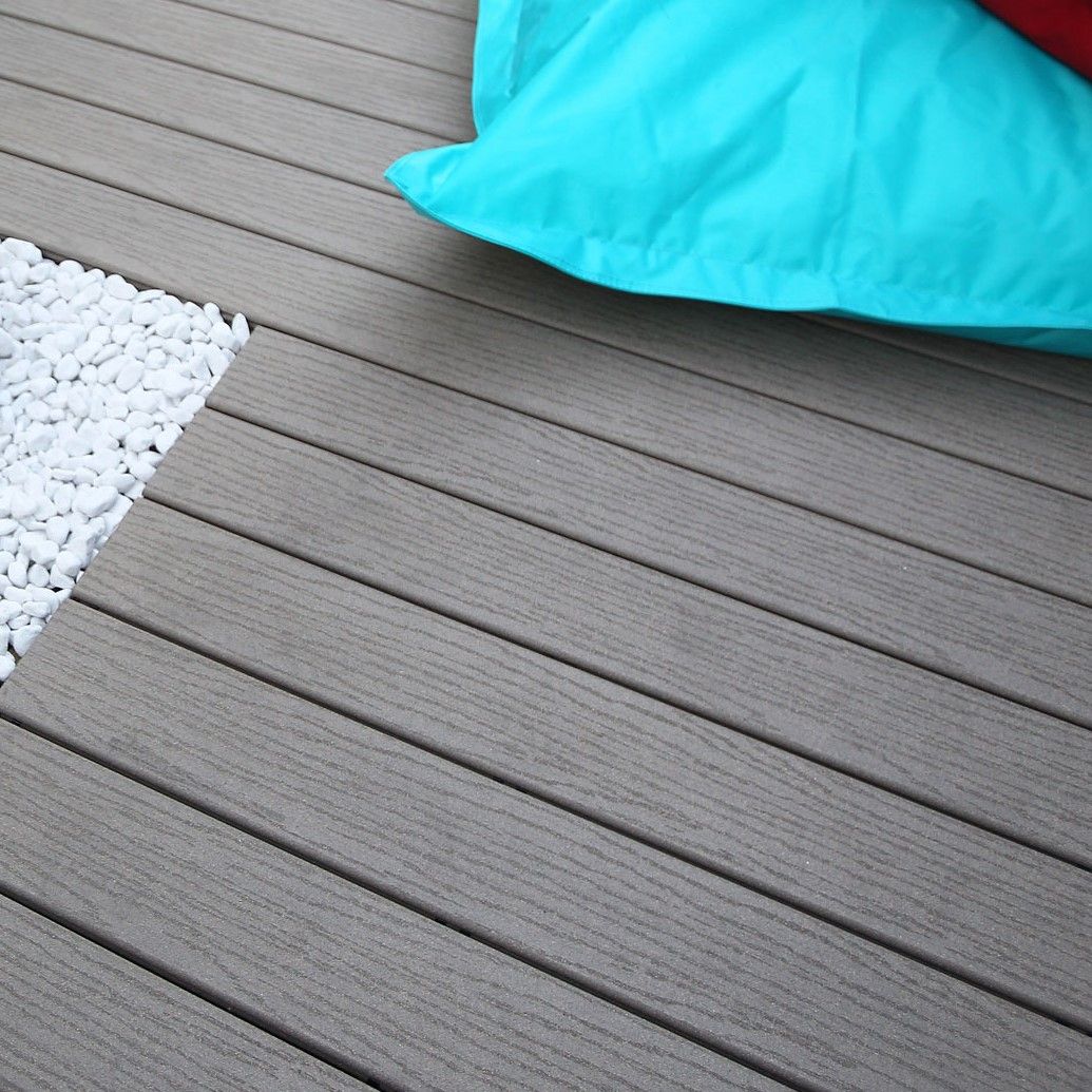 Lame terrasse composite Fiberon Classic, profil double face 3050x127x20 mm,. Fixation invisible par clips inox noirs pour une plus grande discrétion.