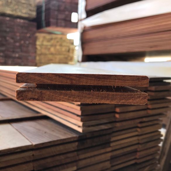 Lames de terrasse en ipé avec rainure et languette par bout. 1800 x 95 x 21 mm.