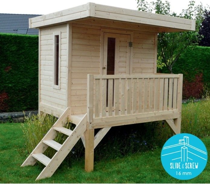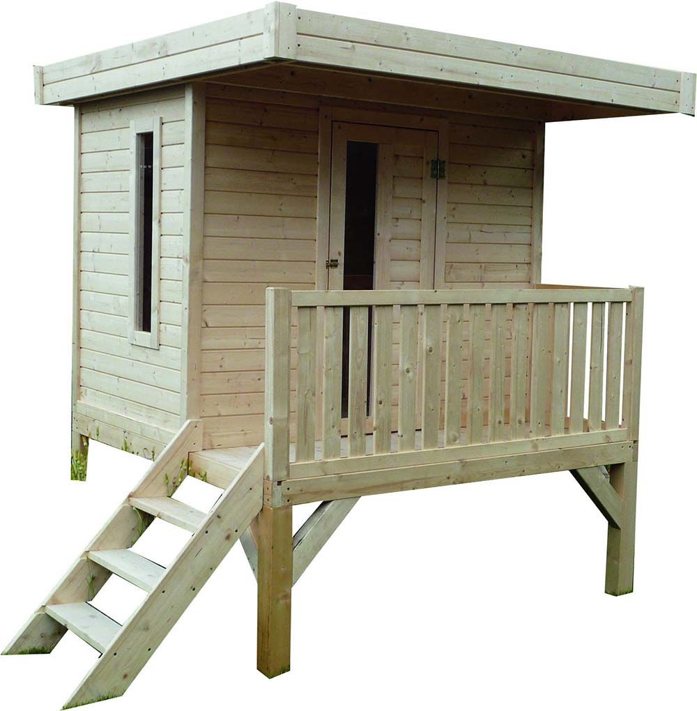 Une maisonnette en bois interdite aux parents ! La cabane Playhouse Modern est une cabane au look moderne grâce à son toit plat qui permet aux enfants de développer leur imaginaire. Cette maisonnette sur pilotis est pensée pour les enfants dès 3 ans. Le bois brut peut être peint ou lasuré pour une personnalisation totale. Le plancher inclus assure un confort optimal, même en hiver.