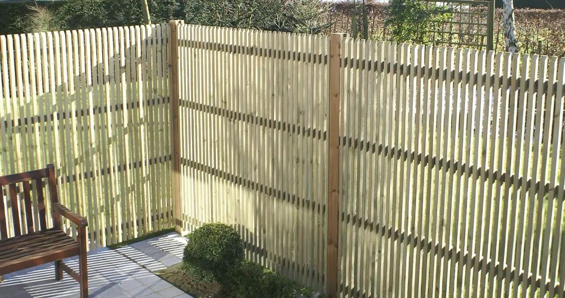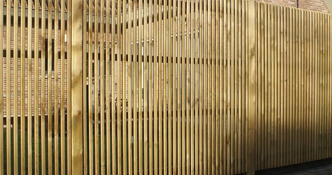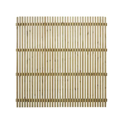Le panneau PLANO de la marque Exterior Living est fabriqué avec des tasseaux bois 28x28 mm qui ont été rabotés afin d'éliminer les échardes. L'espace séparant chaque tasseau vertical est de 22 mm.