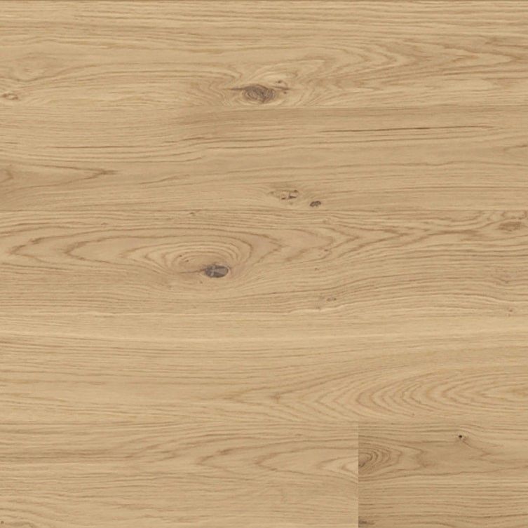 Fabriqué en France par Panaget, ce parquet est composé d’un support HDF (fibres de bois haute densité) et d’un parement en chêne de 3,4 mm, garantissant robustesse et durabilité.