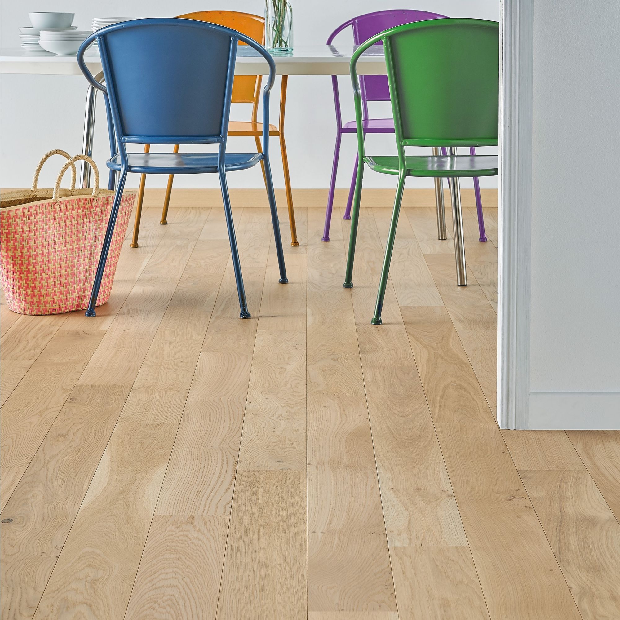 Ici, le charme naturel du parquet contrecollé monolame Panaget crée une ambiance apaisante vraiment réussie.