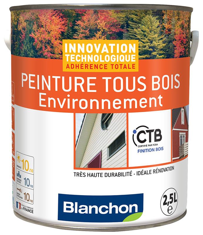 La peinture professionnelle tous bois environnement BLANCHON, conçue pour toutes les essences de bois ainsi que les bois autoclavés et thermo-traités, est parfaite pour la rénovation sur tout type d'ancienne peinture ou lasure.
