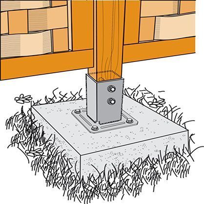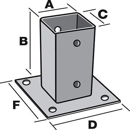 Les pieds de poteau carrés sur platine PPJBT70 peuvent être boulonnés sur support béton et acier ou vissés sur bois.