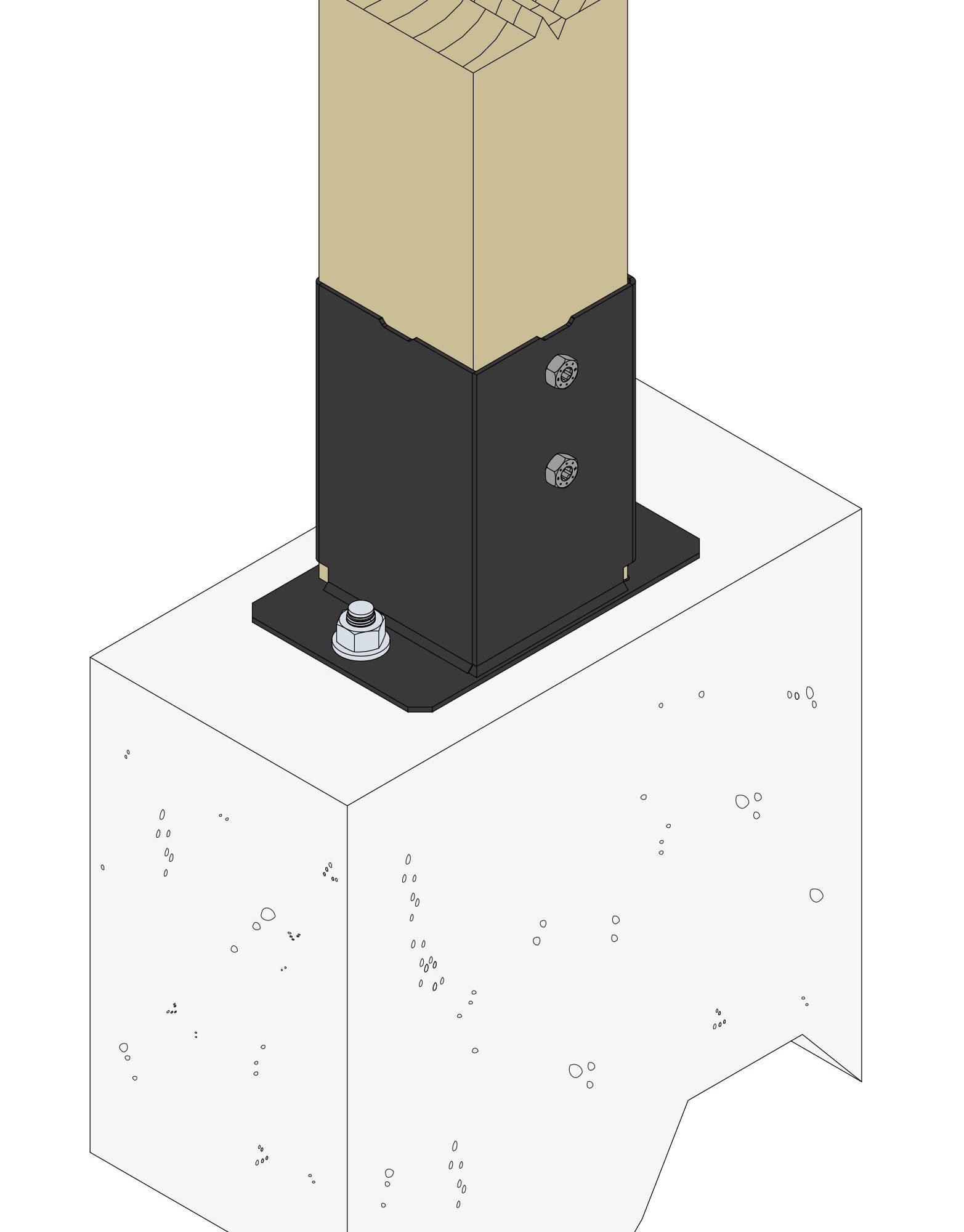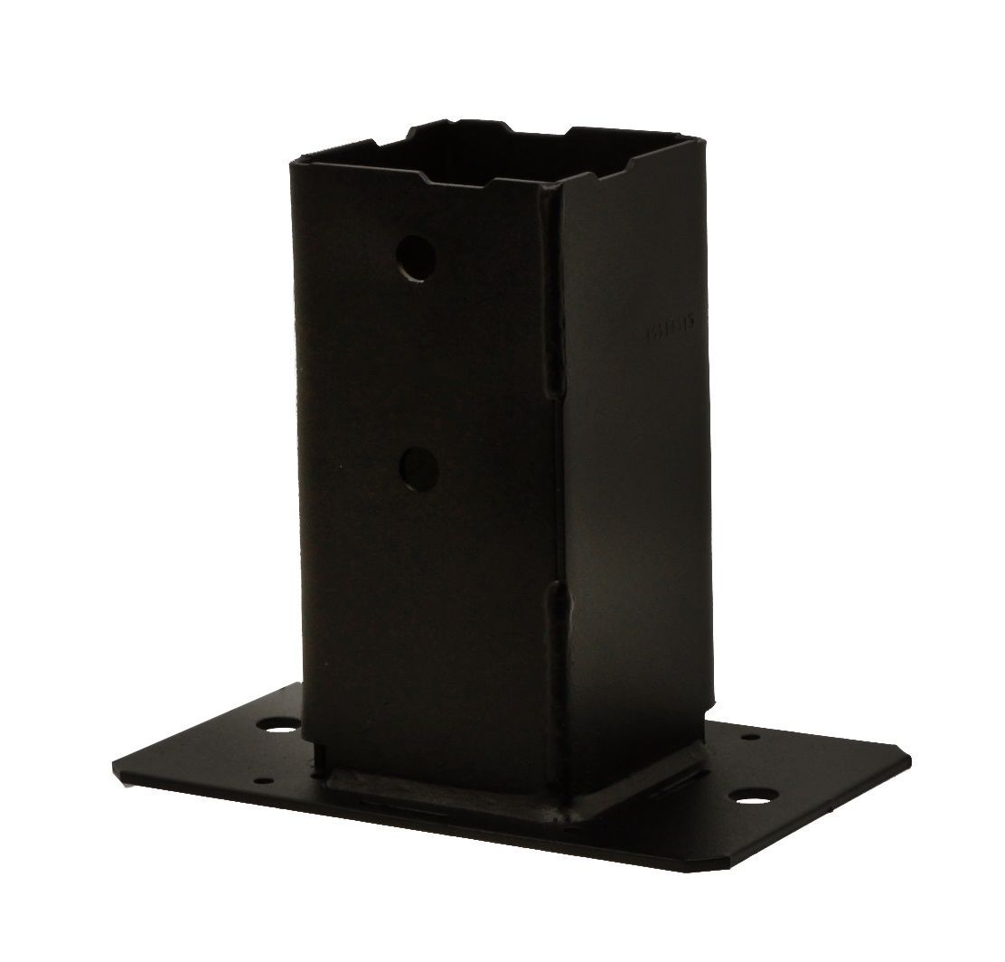 Pied de poteau carré sur platine préconisé pour la réalisation de clôtures sur supports étroits pour des poteaux de 90 mm.