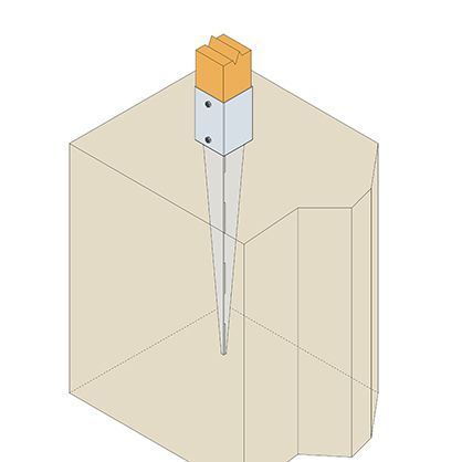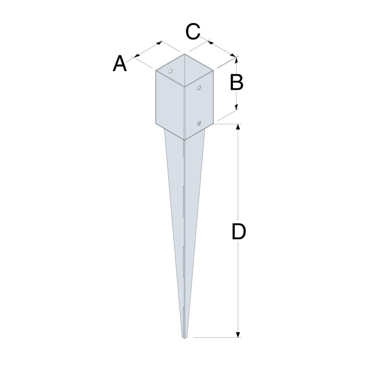 Le pied de poteau à enfoncer en acier galvanisé PPJET90/750 permet la connexion de poteaux de clôture en bois et structures temporaires dans le jardin.