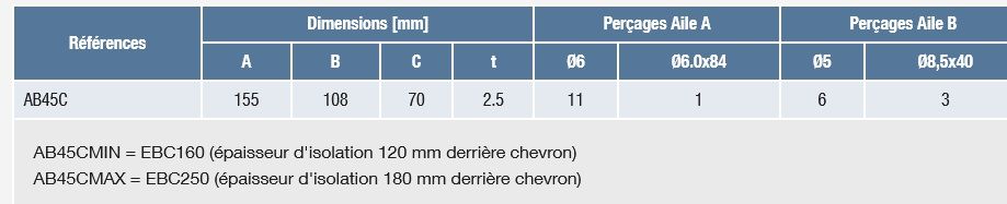 L'équerre d'angle AB45C peut être utilisée pour une isolation derrière chevron allant de 120 à 180 mm,