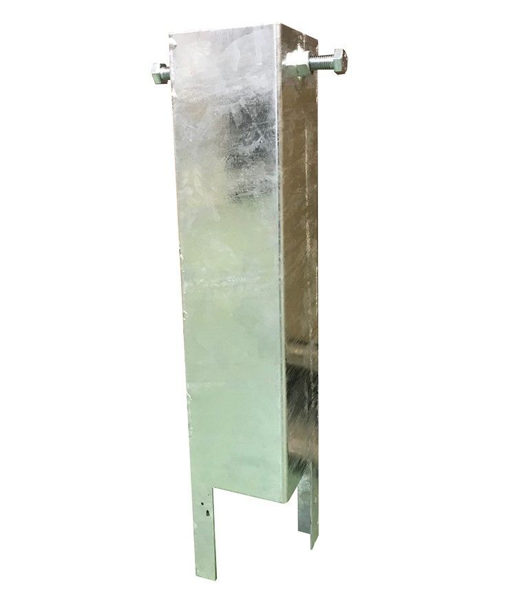 Pied de poteau en tube à sceller recommandé pour la fixation dans le béton de poteaux en bois 9 x 9 cm.
