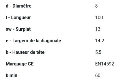 Boîte de 50 tirefonds 8 x 100 mm pour la fixation de poutres, poteaux et supports bois sur bois ou métal sur bois.