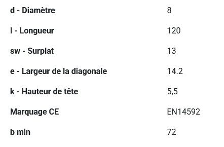 Boîte de 50 tirefonds 8 x 120 mm pour la fixation de poutres, poteaux et supports bois sur bois ou métal sur bois.