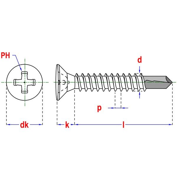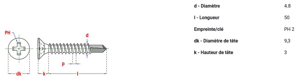 Vis autoforante DIN 7504P Ø4,8x50 mm Tête fraisée :